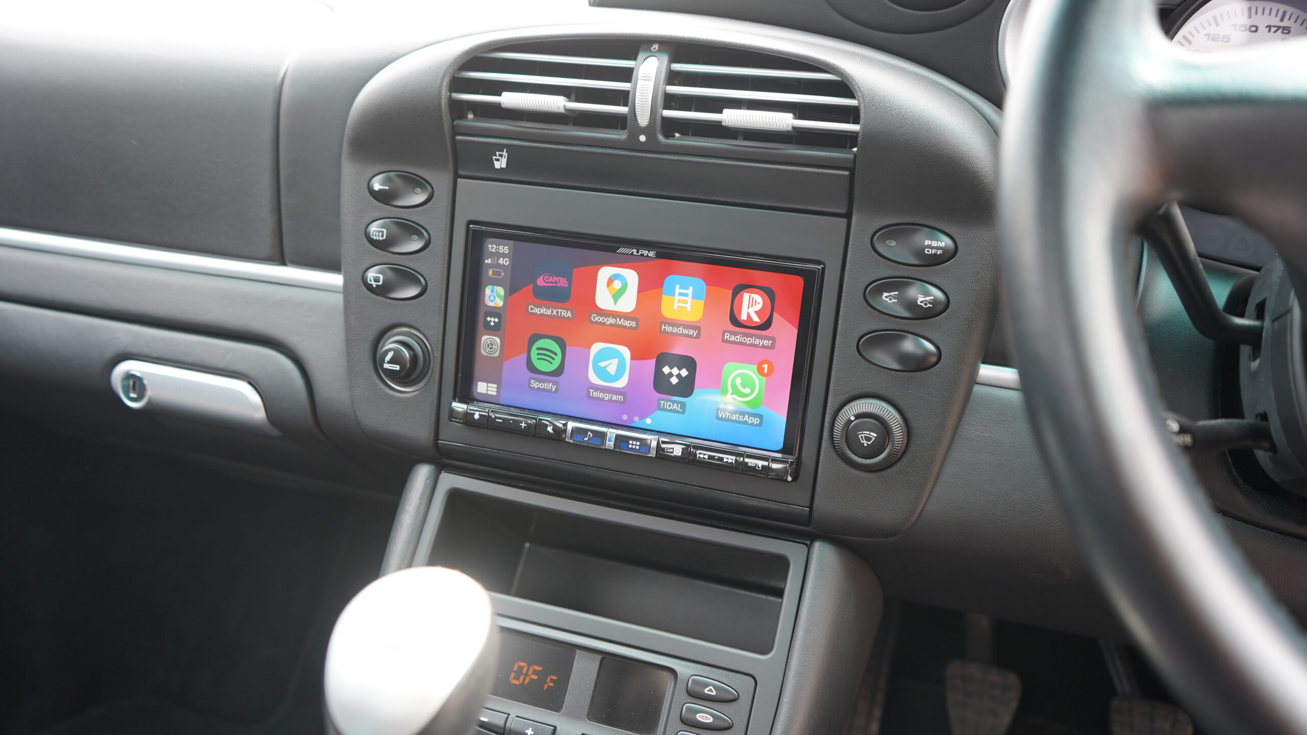 We’ve given this 2002 Porsche 911 (996) a serious tech upgrade by installing the Kenwood DMX8021DABS, bringing cutting-edge features to this iconic classic. The new system adds Apple CarPlay for seamless smartphone integration, a modern touchscreen display that’s both sleek and responsive, and DAB radio with Bluetooth connectivity for crystal-clear audio and effortless hands-free calling. This upgrade transforms the driving experience—combining modern convenience and connectivity while preserving the timeless Porsche feel that enthusiasts love.