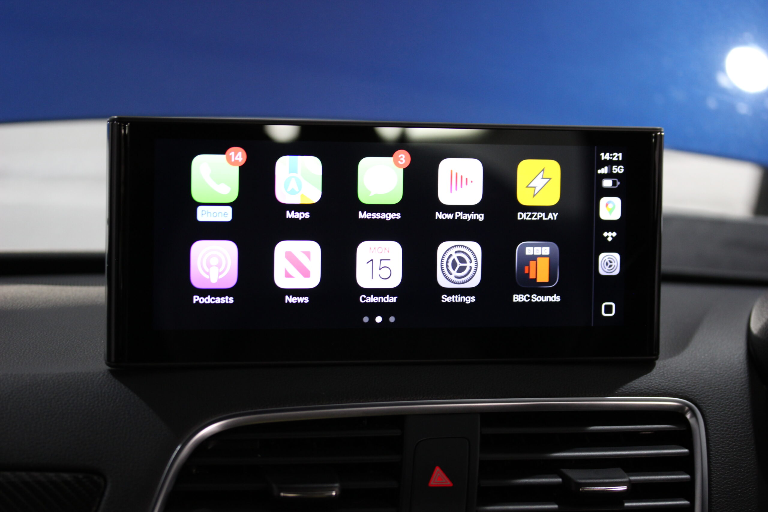 Apple CarPlay mirrors key apps from your iPhone onto your car’s screen, giving you safe access to navigation, music, calls, messages, and apps using the touchscreen, buttons, or voice control.